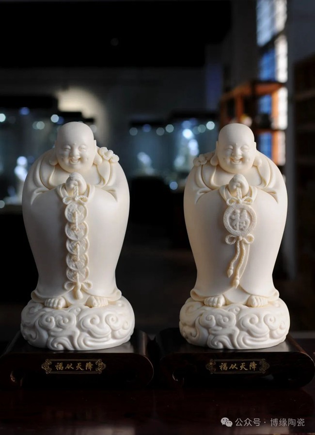 德化瓷器,以白瓷最为闻名;白瓷之中,又以佛像最为闻名。德化白瓷所塑佛像有性格鲜明、造型优美、神态逼真、风格洗练的特点。有一种单纯的雕塑美和原材料的质地美,最能体现佛教朴素、平和的思想。明一代“瓷圣”何朝宗佛像名作流传后世,成为世界各大博物馆收藏的珍品,更对佛像雕塑史上产生深远的影响,形成“何派”雕塑,其开创的捏、塑、雕、刻、刮、削、接、贴八字技法延用至今。