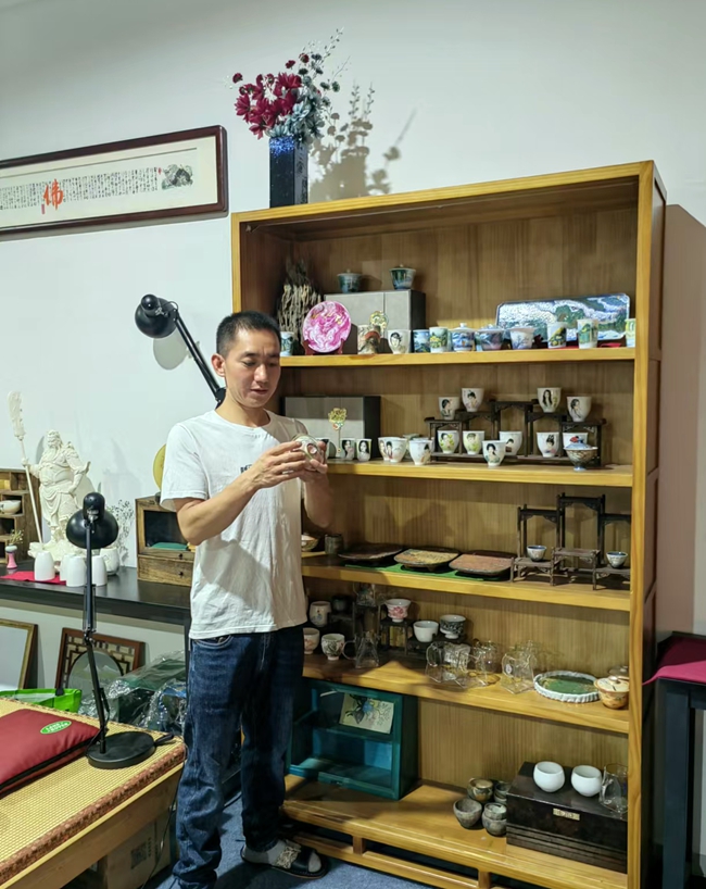 苏文昌从事陶瓷设计创作10多年,主要作品有手拉胚茶器、纯手工茶器、柴烧茶器等。作品多次获得国内各评比大赛金奖,2024年荣获“中国青年陶瓷艺术家”,作品《志野烧熊猫》荣获2024年中国国际(北 京)陶瓷艺术名家精品展作品评比金奖,其作品深受广大客商、藏家青睐,广受好评。