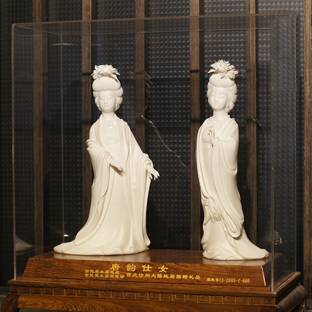 2004年10月《唐韵仕女》选赠首次来访的中国国民党主席连战和亲民党主席宋楚瑜(西安),为西安大唐芙蓉园设计制作大型组雕《召见使节》,(合作);