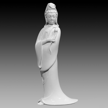 观赏他的作品,其展现出的精湛工艺和温润神韵,很难相信作者竟如此年轻。林建平的作品以宗教系列为主,观音作品很多来自对何朝忠经典作品的追随,在专业经营大师陶瓷的“禅瓷文化”董事长林文彬看来,林建平宗教题材作品,具有不俗的潜力。