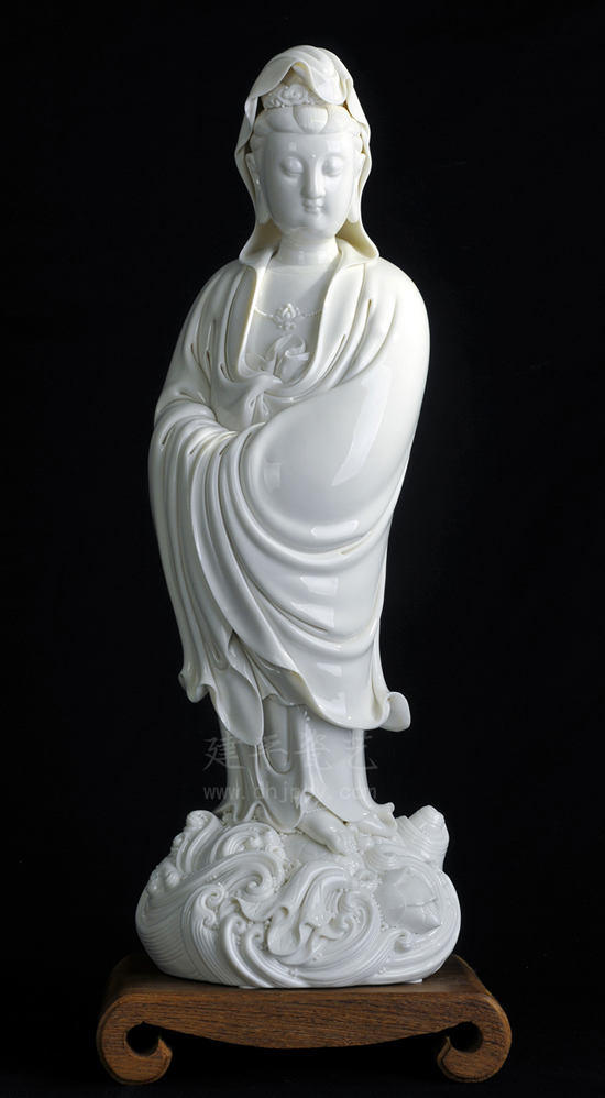 在追随何朝宗艺术脚步的同时,林建平一直在寻找着突破。他把佛像中一些繁琐的部分进行简化,并达到了不同的艺术高度。不止在创作上的突破,林建平对市场的准确把握,也使其创作出来的作品具有说服力。如今陶瓷界百花齐放,对于陶瓷的创新多种多样,而能坚持在传统的宗教题材中做精做细,寻求突破,这又何尝不是一种创新?在大师云集却仍面临着陶艺传承问题的德化,这位后起之秀今后的发展令人期待。