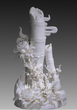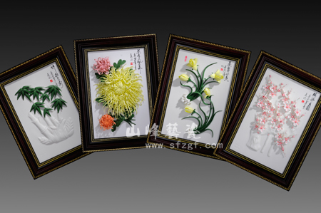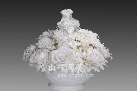 山峰珍品由郑国峰专注设计,创作,其中花苑佳作,近年来得到社会各界人士的关爱和收藏。中国白作品《繁花似锦》(18″大花篮)曾经作为唐山市陶瓷博览会礼品赠之有关国家领导人;《梅兰竹菊》出品之后,赢得良好的市场效应,并受到福建省版权专利保护,现限量生产;《竹报平安》面市以来,深受欢迎,并申请专利(专利号:200530062542.3),现也限量生产;《女神》,《繁花似锦》壁挂(45×88cm)获福建省工艺美术大师暨第四届工艺新品“争艳杯”银奖和铜奖。