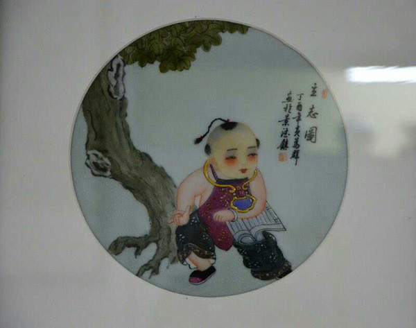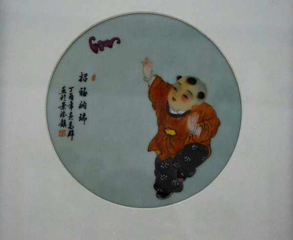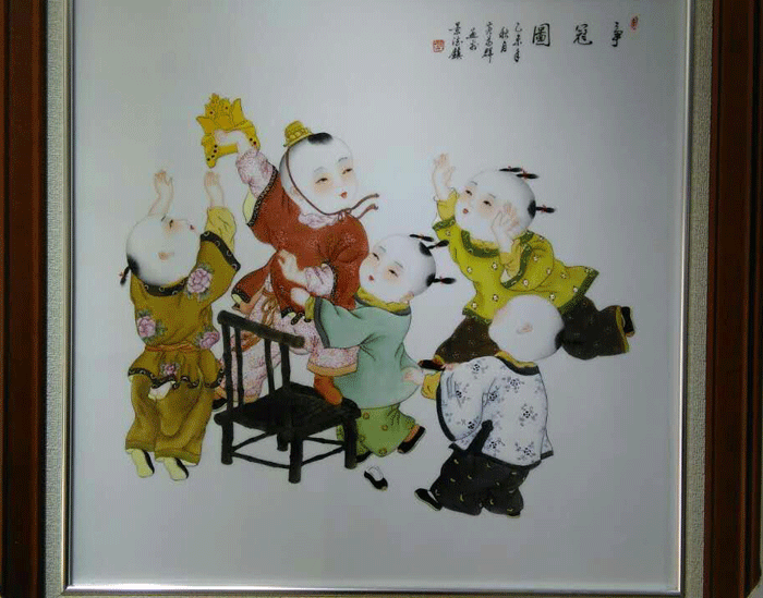 瓷板作品2013年江西省工艺美术“国瓷杯”陶瓷精品大赛荣获“金奖”新彩“童子争冠图”鞍山市博物馆永久收藏。
