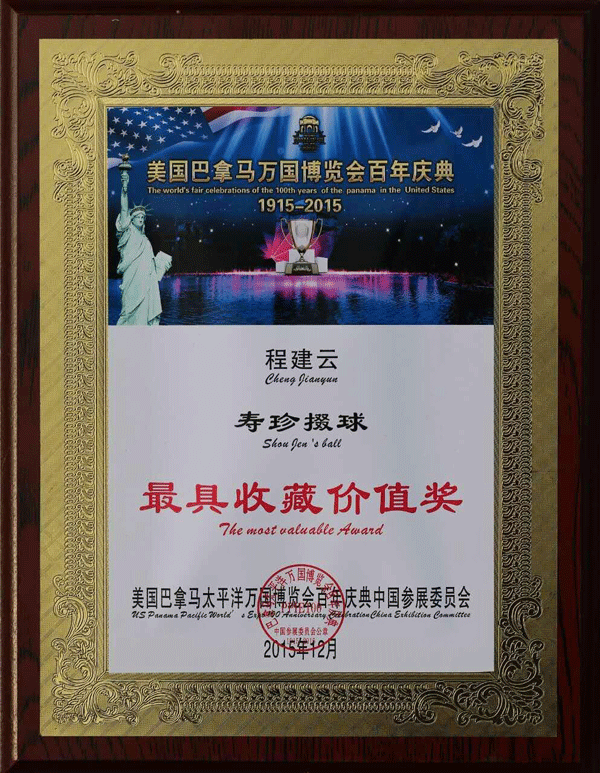 2015年作品荣获美国巴拿马万国博览会百年庆典巴拿马最具收藏价值奖