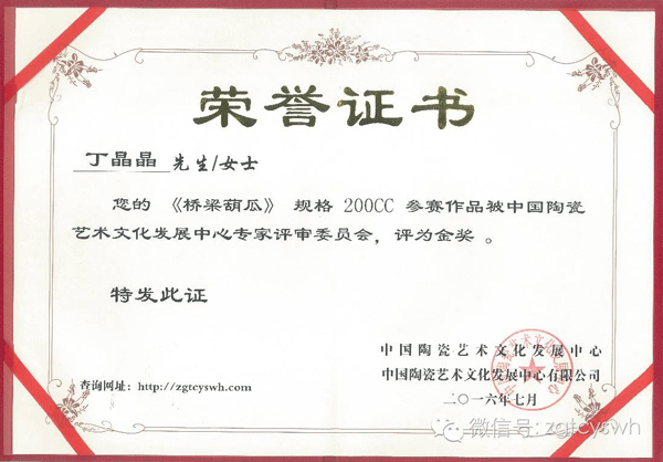 为当代紫砂艺术界不可多得且极具潜力的新秀!2016年经中国陶瓷艺术文化发展中心评审委员会评定为“中国青年陶瓷艺术家”。