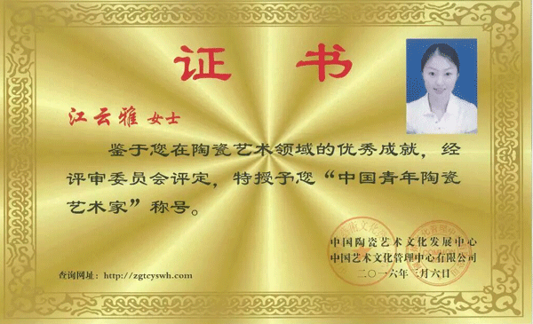 2016年经中国陶瓷艺术文化发展中心评审委员会评定为“中国青年陶瓷艺术家”。 |