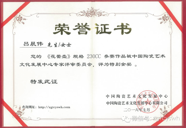 2012第十四届国家级工艺美术大师精品博览会中,《合菱》获得金奖。2013年9月在太原首届紫泥素韵紫砂艺术展评比中,《高登》荣获金奖。