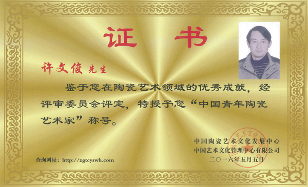 2016年经中国陶瓷艺术文化发展中心评审委员会评定为“中国青年陶瓷艺术家”。 |