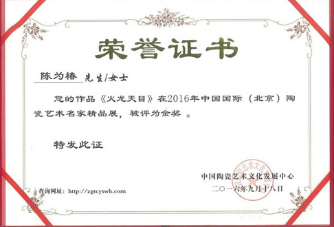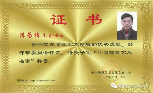 2016年经中国陶瓷艺术文化发展中心评审委员会评定为“中国陶瓷艺术名家” |
