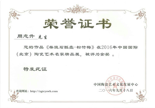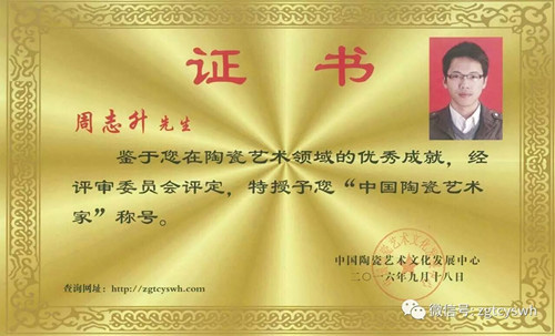 2016年经中国陶瓷艺术文化发展中心评审委员会评定为“中国陶瓷艺术家"