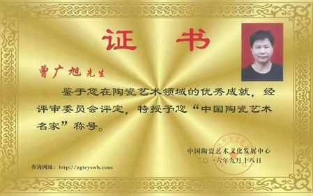 个人简介: 曾广旭,男,1971年出生于徳化。国家级高级工艺美术师、中国陶瓷艺术名家、中国陶瓷艺术文化发展中心会员。