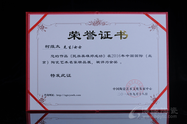 2016年9月18日获评“中国青年陶瓷艺术家”
