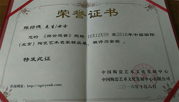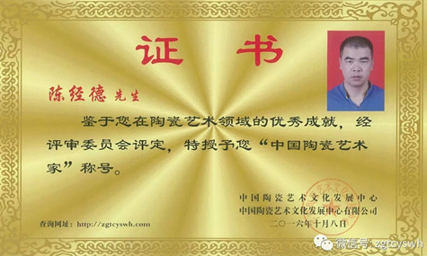 个人简介: 陈经德,中国瓷都德化人,出生于1980年6月,坐小酷爱陶瓷,上学毕业后到陶瓷厂工作,2005年自己开办德玉陶瓷研究至今。2016年经中国陶瓷艺术文化发展中心评审委员会评定为“中国陶瓷艺术家”。