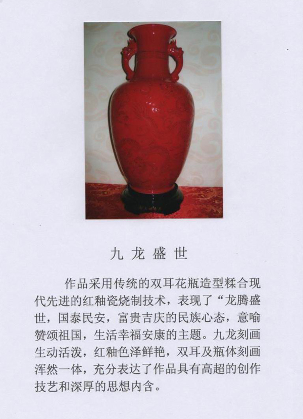2008年7月,作品:《九龙盛世》荣获“第六届中国工艺美术博览会暨古典家具。收藏品博览会”“中艺杯”优秀作品评比大赛银奖。