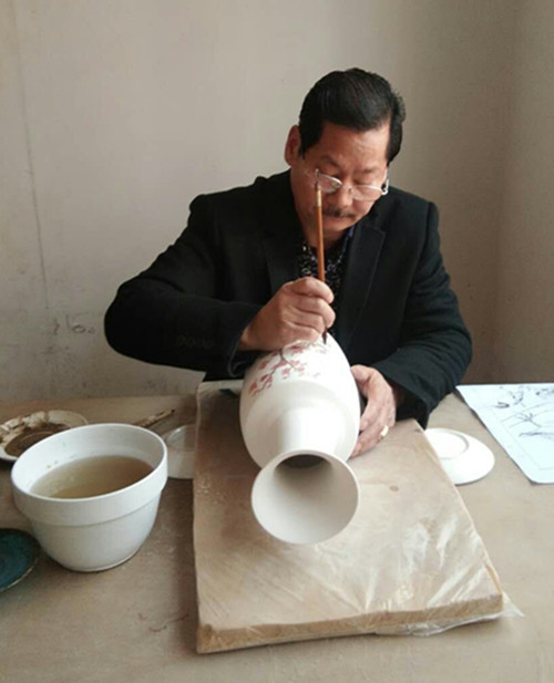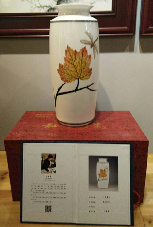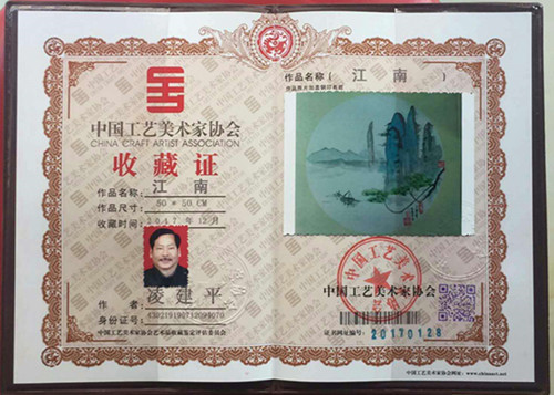 作者简介: 凌建平,男,湖南醴陵人,1957年出生。中国工艺美术协会会员,国家一级工艺美术画师。其作品多次在各类比赛中获奖,得到名师画家蔡维、朱墨均的指点,在山水画,国画方面颇有造诣和自己的见解,极具个性。其作品“花开富贵”被永久烙印在陶瓷艺术品上。2017年,其作品“江南”被中国工艺美术协会收藏。2018年1月18号携其作品《秋叶》参加第一届中国武汉全国陶瓷艺术名家精品展荣获金奖,至此得到了各界人士的高度评价,取得了良好的反响。