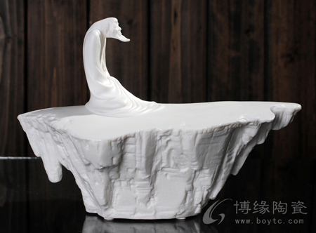 作品以德化特有的温润如玉的“中国白”为胎质,纯手工制作,所塑人物性格鲜明,神态逼真,造型优美,风格洗练。