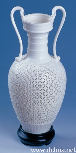 《双龙争艳通花瓶》,创作于2002年,荣获2002年福建省工艺美术精品“争艳杯”大赛铜奖、中国工艺美术“2002华艺杯”铜奖;