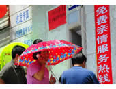 灾民通过免费亲情热线向远方
