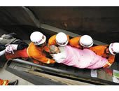 医务人员把台湾游客抬下直升