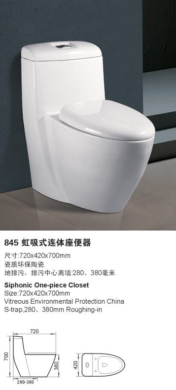 845虹吸式带护冲连体坐便器