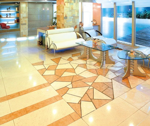 | 材料如何很好地配合装修,只要用心思考,完全能够获得创意灵感。客厅地面的主体图案,利用本户型地砖的碎料,采用随意的铺贴法故意将砖缝留粗、夸大,并用同一色系的深褐色水泥钩缝,令轻重对比,形态各异的“碎砖”在粗放的砖缝“安抚”下,于设计师划定的范围内张扬着各自的个性,本户型浪漫不羁的性格在此得到最精彩的表现。看似随意,其实很用心。 |