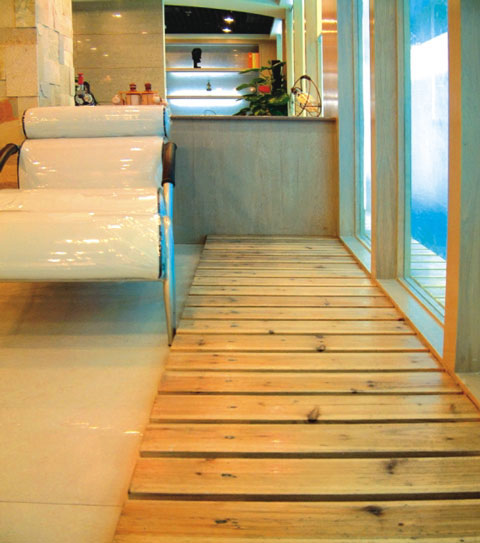 落地窗前的狭长地带往往容易被人忽视。长长的木通道的创意灵感,来源于南美特殊的人文地理环境,本案的处理使地面的层次亦随之变得丰富,窗外的美景更是籍此延伸入室内,个性化元素的如此具体运用,往往更能使主体凸现。