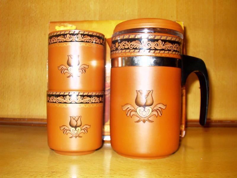 本产品使用方便,冲泡快速,容易清洗。 同一杯组,可同时泡茶,过滤及饮用。 本产品不吸异味,能保留原有的茶香,可当鉴定杯。 可泡绿茶,花茶,普洱茶等茶叶,且不必换过滤纸。 Easy to use of washing,qiuk brewing. AU in one,design bets you use your kener cup to brew filter and drink tea. Will not absorb odors,can be keep of the tea's onginal aroma and used for tea tasting. Brewing many kinds of tea with green tea,flower tea,pu-er tea,it doesn't need filter paper. 一壶加两杯包彩盒 零售价:花纸(绿莲、金莲、花边)一套38 手彩(兰、竹、山水)一套40 出厂价面议!