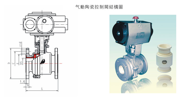 8、本系列球阀材料采用陶瓷和球墨铸铁相结合,其球体和阀座均采用耐磨陶瓷制造,阀体内与介质接触的部分均为陶瓷,提高了阀门的抗磨性及耐腐蚀性能。