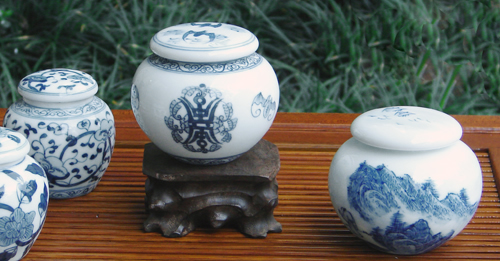 青花天球茶叶罐