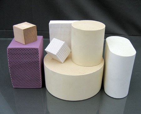 蜂窝陶瓷比表面积太,阻力小,应用范围广催化剂载体-降低有机物氧化温度、净化工业废气、汽车废气换热介质一用于热交换过程,蓄热元件可节能12%耐火窑具-质量/体积比小、传热快、热效高煤气燃烧分布板一促进燃烧完全、可节能10%