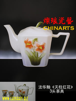 基本信息:商品编码:CJ-FH-LX-E001商品名称:法华釉《红花》3头茶具商品规格:3头(1壶2杯)包装材料:礼品锦盒包装尺寸:L*W*H=29*26*13.5尺寸单位:厘米(CM)