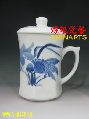 基本信息:产品编码:CJ-CB-GB-A012产品名称:手绘青花花卉装饰高白薄胎瓷茶杯产品规格:15*8.5*8.5(400ML)包装材料:纸盒