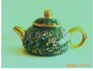 加彩紫砂茶壶