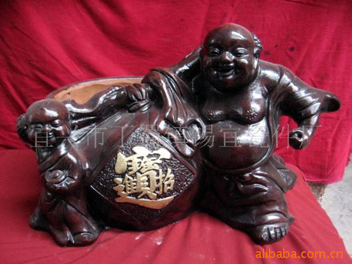 紫砂陶雕塑花盆
