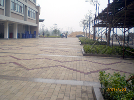 6. 施工方便性:舒布洛克陶质透水砖施工极为方便,首先平整基础,压实率达到95%以上,然后铺垫10-15cm碎石子,再压实,压实率达到95%以上,在此基础上再铺垫2-3cm中粗砂。