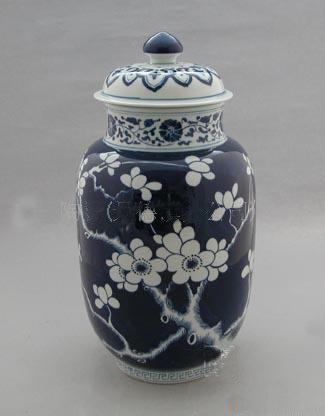 青花蓝地兰花盖罐