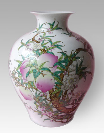 粉彩寿桃手绘橄榄瓶
