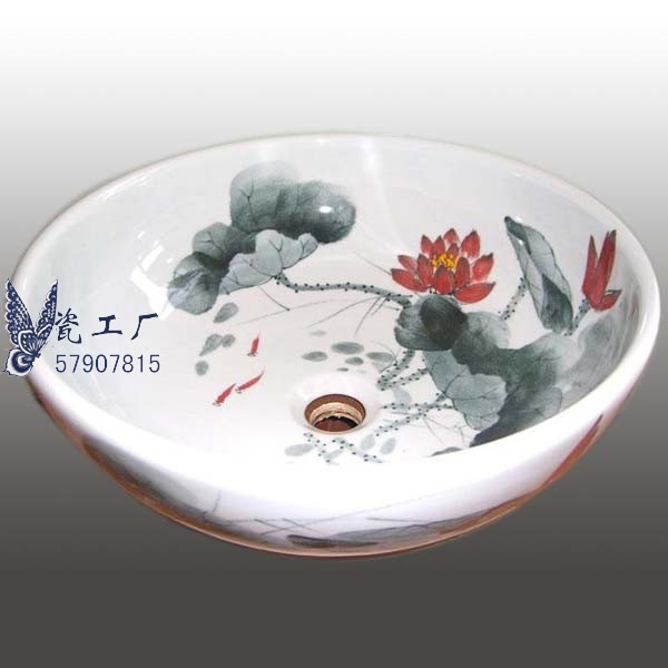 特 点: 全新概念手工刻绘艺术陶瓷台盆——具有个性化与传统理念融为一体的卫浴洁具,经1320`C高温烧成,无铅无毒,平滑亮丽,颜色经久耐磨,保证花色不会在使用过程中脱落,保证期100年哦^-^。采用纯手工拉坯纯手工刻绘并辅以专业画面设计,中间有标准的出水口,方便安装,美观新颖,台盆的釉面、纹理、颜色、形状,都具有景德镇的陶瓷艺术特色,古典优雅。