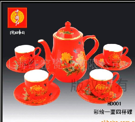 彩绘茶具一壶四杯碟