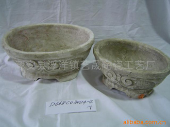 粗土彩绘浮凋花盆