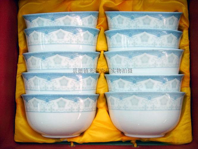 产品材质: 瓷白细腻,花纹清晰素雅,是居家使用和高档饭店的首选。采用景德镇传统制瓷工艺结合现代高新技术,研制开发新一代高白釉碗。