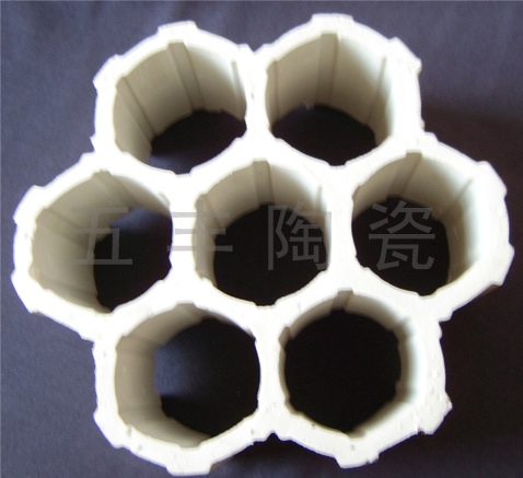 一、轻瓷填料比重轻、阻力小 轻瓷填料的密度为1.04g/cm3,堆比重为0.4g/cm3,远小于全瓷填料和金属填料的密度和堆比重,从而具有操作重量轻的优点。 作为规整填料,轻瓷填料在煤气通量为50000米3/小时的洗萘塔中,其干塔阻力小于50毫米汞柱,操作阻力小于100毫米汞柱,从而不容易造成堵塞,克服了散装填料易破碎、易堵塞的缺点。 二、轻瓷填料传质系数大、有效面积大、效果好 通过对轻瓷填料性能的测定表明,轻瓷填料传质系数大,是全瓷填料的2.2倍。另外轻瓷填料在装填好后其相邻填料只有6个支撑腿重叠为无效面积,而且气液相传的形式是‘面’接触,再加上轻瓷填料系微孔蜂窝陶瓷,具有微孔面积和空间液滴面积,从而使得轻瓷填料的有效面积大于99.5%,分离净化效果极佳。与之相反,全瓷填料、塑料填料以及金属填料由于没有微孔,吸附性能不好,液体在塔内直流不挂液,滞留时间太短,气液相传的形式是‘点’或‘线’接触,其使用效果明显不如轻瓷填料。 三、轻瓷填料耐老化、抗腐蚀性能强、寿命长 轻瓷填料耐热性能良好,耐火度高达1400°C,且耐急冷急热,另外轻瓷填料的耐酸耐碱性能也非常优越,使用寿命长,不易老化。合肥煤气厂自85年使用轻瓷填料以来,至今还没有提出过要更换填料。与之相比,塑料填料的致命弱点在于不耐温,易老化,使用寿命短,而碳钢金属填料不适用于有腐蚀介质的场合,若改用不锈钢金属填料则又造价昂贵。 四、轻瓷填料结构新颖、可切割、装填方便 轻瓷填料系规整填料,可切割拼装成圆,不仅装填方便,而又能使整个填充平面得到100%的利用,其他规整填料由于不可切割,塔四周不可避免地有大小不等的空洞,壁流、沟流现象严重,不同程度地会影响使用效果。 总之,轻瓷填料成功地解决了空隙率与比表面积两者之间的矛盾,既不易堵塔而使用效果又良好,是填料塔用户的极佳选择。 |
