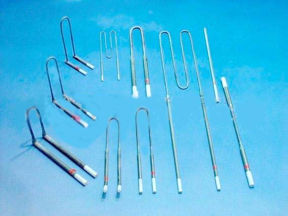 硅钼棒是一种以硅化钼为基础的,用电能来获得热能的发热元件。在氧化性气氛下加热到高温时,发热体表面的硅成份与氧气接触,化学反应表面形成一层致密的石英玻璃膜,保护其内部不再氧化。因此,硅钼棒具有独特的高温抗氧化性。在氧化气氛下,其最高温度可达1800℃,其适用工作温度为500-1700℃,可以用作陶瓷、磁性材料、玻璃、冶金、耐火材料等工业及院校科研所用高温炉的加热元件