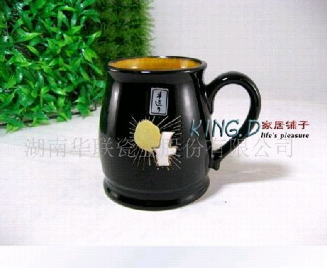 非常光亮的釉面,内部则用了有反差的颜色烧成。喝啤酒或者咖啡吧,很漂亮又特别的杯子。