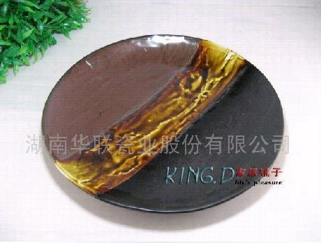 中间那部分黄色是亮釉,高温烧制