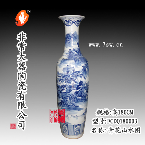 【公司简介】景德镇非常大器陶瓷有限公司,作为中国首家大花瓶专营公司,是以设计、加工、定制陶瓷大花瓶专业机构,公司开发出岷天牌陶瓷大花瓶,1.8米系列\2.2米系列\3米系列\3.5米系列等标准尺寸大花瓶,工艺上采用青花\釉里红\墨彩\粉彩\新彩\颜色釉\书法\雕刻等景德镇民间传统手工技艺制作,欢迎新老客户商洽。