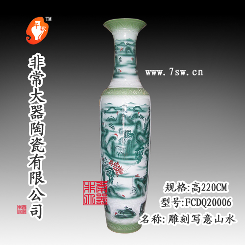 【公司简介】景德镇非常大器陶瓷有限公司,作为中国首家大花瓶专营公司,是以设计、加工、定制陶瓷大花瓶专业机构,公司开发出岷天牌陶瓷大花瓶,1.8米系列\2.2米系列\3米系列\3.5米系列等标准尺寸大花瓶,工艺上采用青花\釉里红\墨彩\粉彩\新彩\颜色釉\书法\雕刻等景德镇民间传统手工技艺制作,欢迎新老客户商洽。