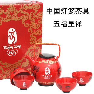 设计灵感源于具有浓郁中国特色的灯笼造型,整体采用喜庆红色,精心挑选奥运运动图形、奥运福娃、牡丹、书法与京剧脸谱等五大中国元素作为设计题材,分别创意,表达最直接的中国祝福。