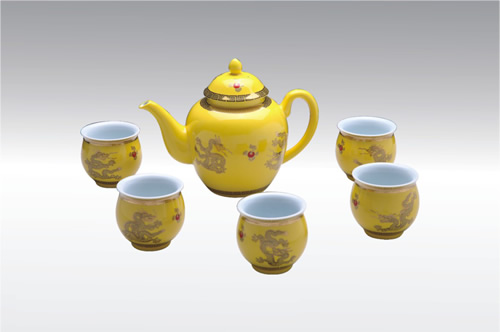 “财神黄” 发财的黄 “财神黄” 寓意招财纳福,财源滚滚,富贵大气。黄色本身就是财富的象征 黄色表示宇宙中的“中央土” 五行当中,“土为尊” 象征君权、尊崇 “财神黄” 凸现黄色釉的天然神韵与尊贵之气 “财神”招财象征与代表财富‘黄”色融合 更是财气大增的极品 一壶配五杯 融合浮雕金工艺与单色釉工艺 器形上蕴涵[九五至尊]文化与寓意 |