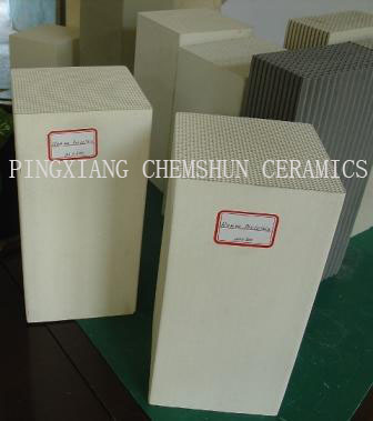 主要是作为催化剂载体,热交换介质,过滤体而存在。我公司主要生产催化剂载体及热交换介质类的蜂窝陶瓷。 1、蜂窝陶瓷的特征 1.1比表面积大 1.2空隙率大 1.3压降低 1.4耐高温 1.5机械强度高 1.6化学稳定性好 1.7重量轻 2、蜂窝陶瓷的材质 堇青石、莫来石、沸石、陶瓷、硅胶、氧化锆 3、蜂窝陶瓷的应用范围 3.1作为催化剂载体,蜂窝陶瓷主要用于汽车尾气净化,空气去异味等,如汽车的尾气催化转换器,宾馆、饭店、厕所的空气清新器等。 3.2作为热交换介质,主要用于RTO的热回收装置中替代矩鞍环。 3.3作为过滤体,主要用于食品、环保、冶金等行业,用于过滤气体中的微粒,金属熔融体中的杂质或气泡,如酱汁、果汁、蔗糖汁的杂质过滤,各种工业废气中的粉尘过滤。 蜂窝陶瓷蓄热体